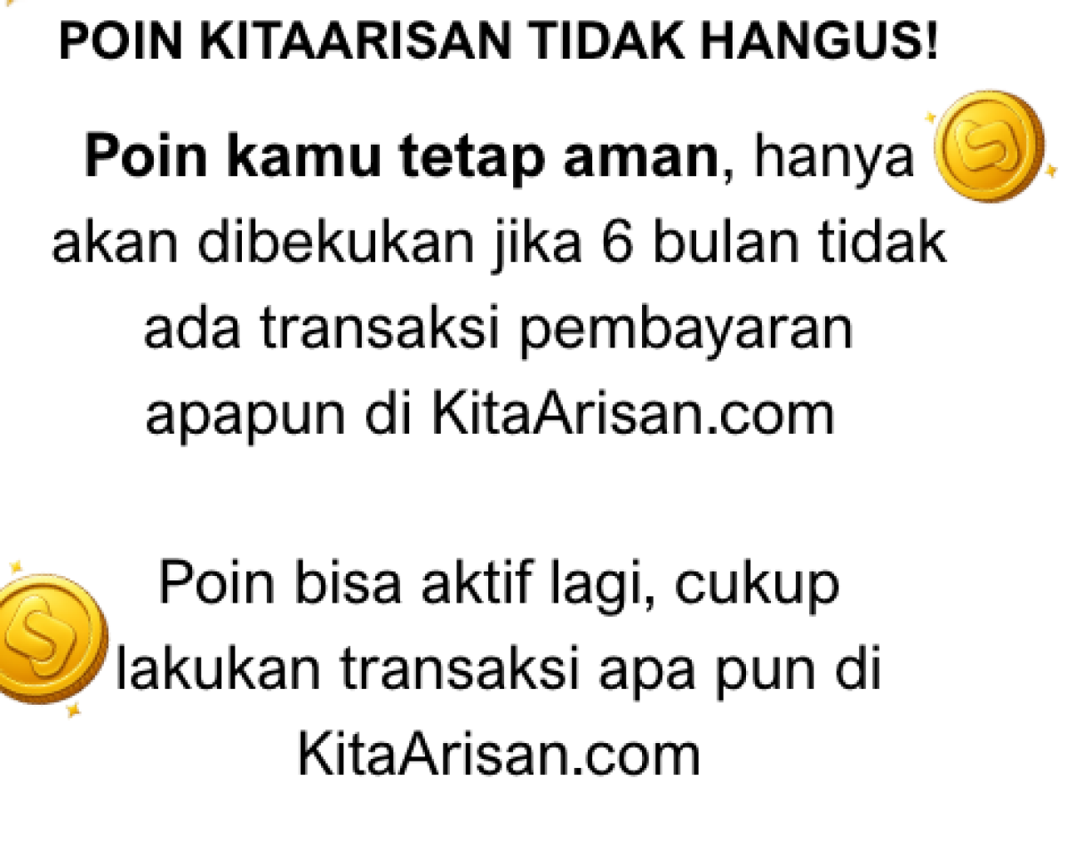 - Poin bisa aktif atau dicairkan kembali dengan melakukan transaksi (pembelian, pembayaran arisan) di aplikasi KitaArisan.com