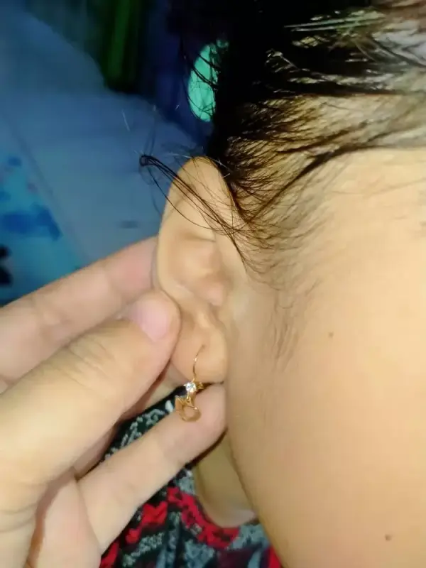 Anting emas berbentuk hati dengan batu putih yang cantik