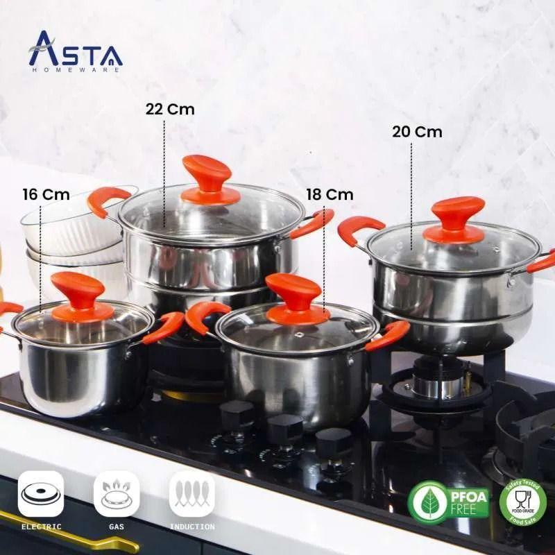 Asta Panci Susun Tutup Kaca Set Isi 4 Stainless Steel