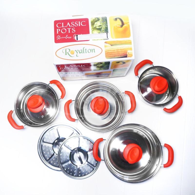 Panci set stainless steel terdiri dari 4 ukuran panci. Cocok digunakan di rumah atau untuk berjualan. Praktis sekaligus hemat. Material stainless steel Food Grade