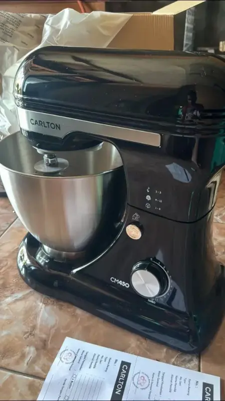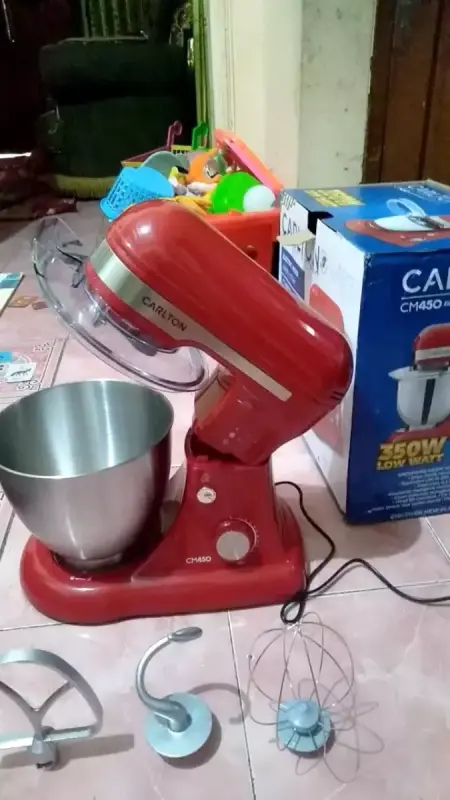 Carlton Stand Mixer Listrik 4.5 Liter Information: Untuk produksi terbaru kami saat ini bowl mixernya terdapat gagang seperti pada gambar slide terakhir ● Kapasitas Mangkuk: 4.5L ●...
