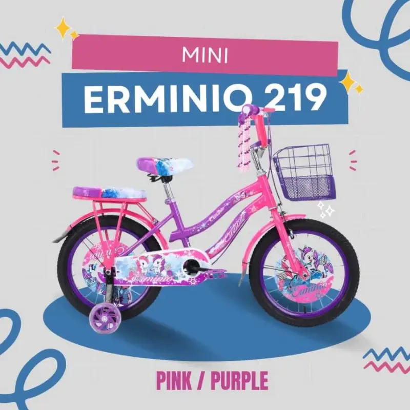 Ermino Sepeda Anak Putri 4-6 Tahun 16 Inch Pink-Ungu • 9 tipe motif menarik untuk anak perempuan• Rangka besi tebal, kuat, dan aman• Dilengkapi keranjang dan boncengan belakang• Pengiriman cepat...