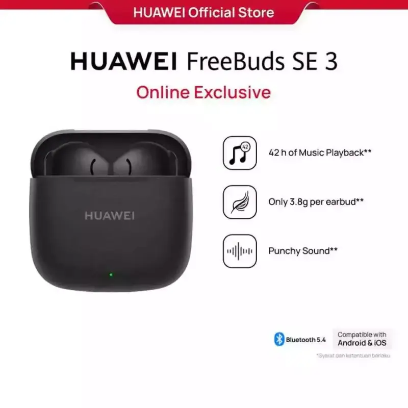 Huawei Earphone FreeBuds SE 3 Wireless TWS - Black Alasan Memilih HUAWEI FreeBuds SE 3: ✅ Desain Ikonik dengan Pemakaian sangat ringan | Bobot 3,8g per earbud ✅ Baterai Super Tahan La...