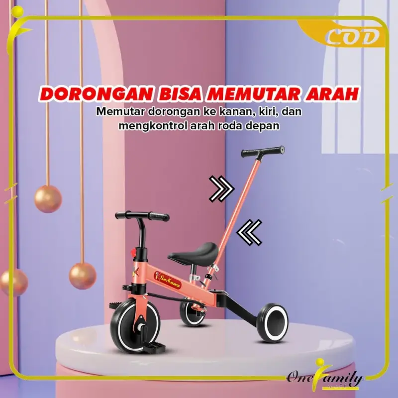 One-M97 Sepeda Anak 1-3 Tahun 3 Roda 2in1 Peach