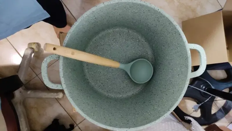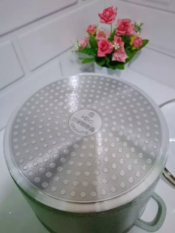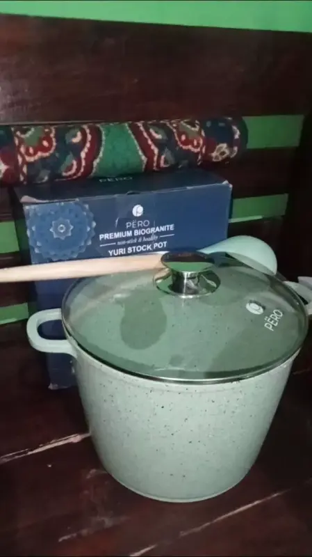 Pero Stock Pot Panci 6 Liter 24 cm + Tutup - Mint Dimensi :Tinggi : 19cmLebar Atas : 24cmLebar bawah : 20cmKapasitas : 6 Liter Including :1x Stock Pot1x Glass Lid Bahan :Alumunium coati...