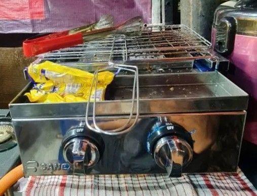 Kompor Panggangan 2 Tungku (SN-KP02) Mesin panggangan sate, pemanggang sosis dan mesin serbaguna untuk memanggang apa saja yang Anda sukai. 2 Tungku memang paling simpel dibawa ke mana saja, apalagi Anda suka kegiatan outdoor seperti camping. Paling cucok, deh, pokoknya!