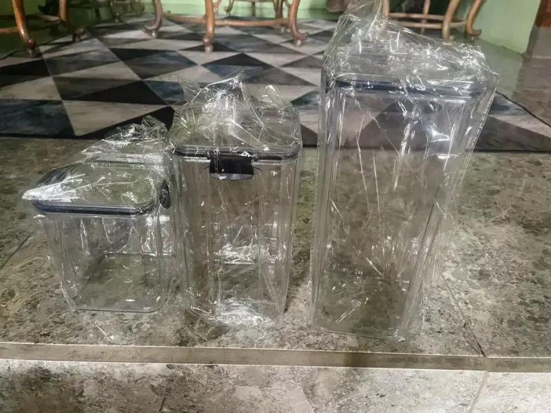 Voova Toples Kotak Snack Kedap Udara Set 3 Pcs Name: Kitchen plastic food storage tank Toples Tutup Hitam Bahan : Akrilik Tebal Warna : Bening Transparan