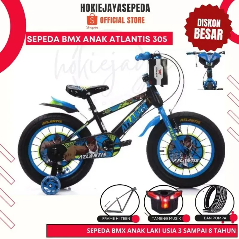 BMX Atlantis Sepeda Anak 5-7 Tahun 16 Inch Kuning Spesifikasi✔️ Batangan besi besar dan kokoh✔️ Stang model oversize dengan musik dan lampu✔️ Tiang sadel bisa naik turun✔️ Warna menarik dan varia...